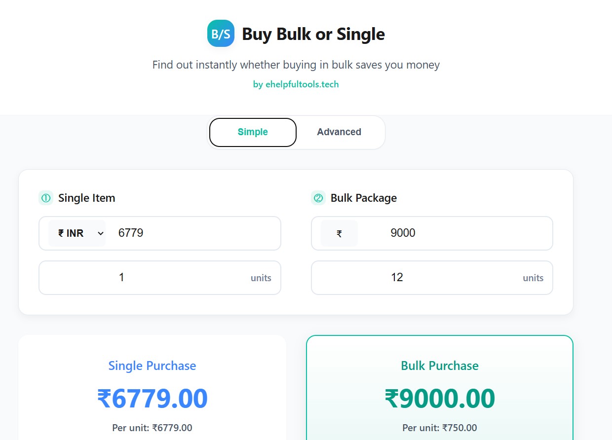 Our bulk vs single calculator uses precise mathematical formulas to give you accurate recommendations: